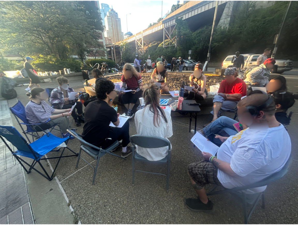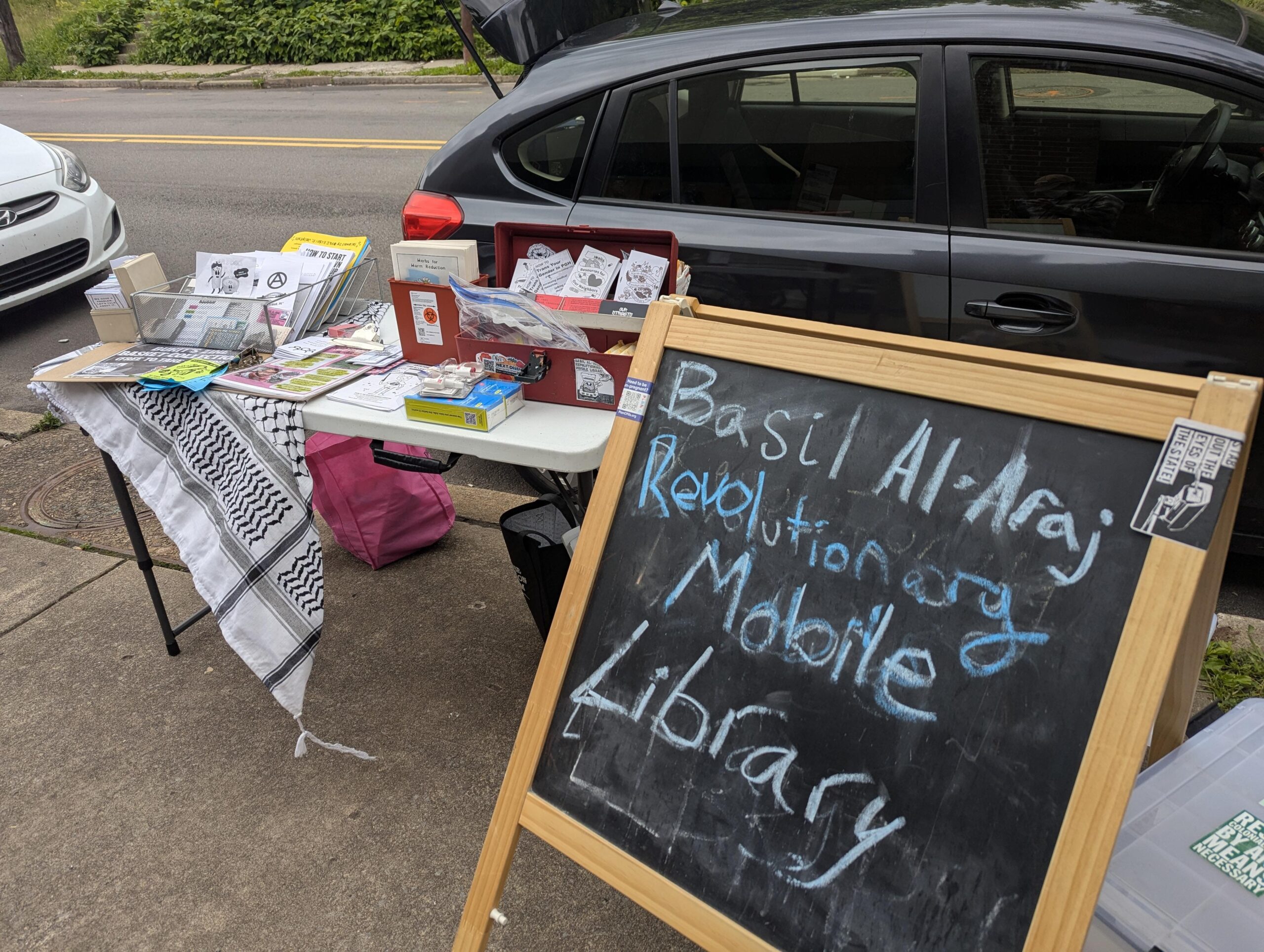 As we continue to grow and collaborate with new people and organizations, we continue to learn and develop. We aim to create a space welcoming to all oppressed and marginalized people, a space to promote and lift up their voices/narratives/praxis. We began in the encampments as an archival and library project to maintain indigenous and pre/anti-colonial knowledge traditions. We maintain that mission as we engage both at the unhoused distros we go to and the collaboration events!