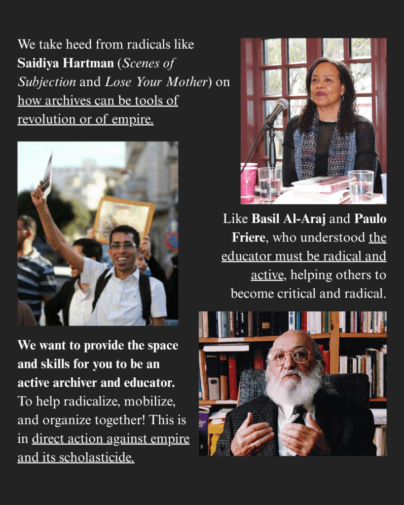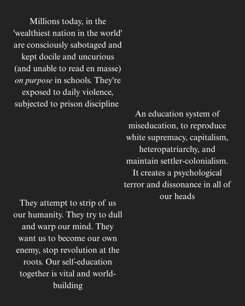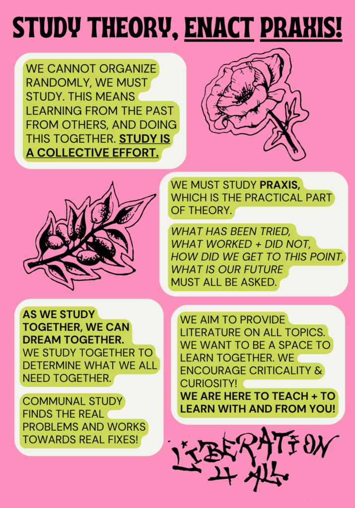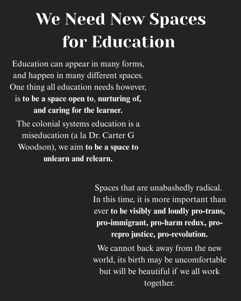 As we grow as a collective, we will be creating our own educational resources. These may be zines, collaborative pieces, critical analysis writings, and more!